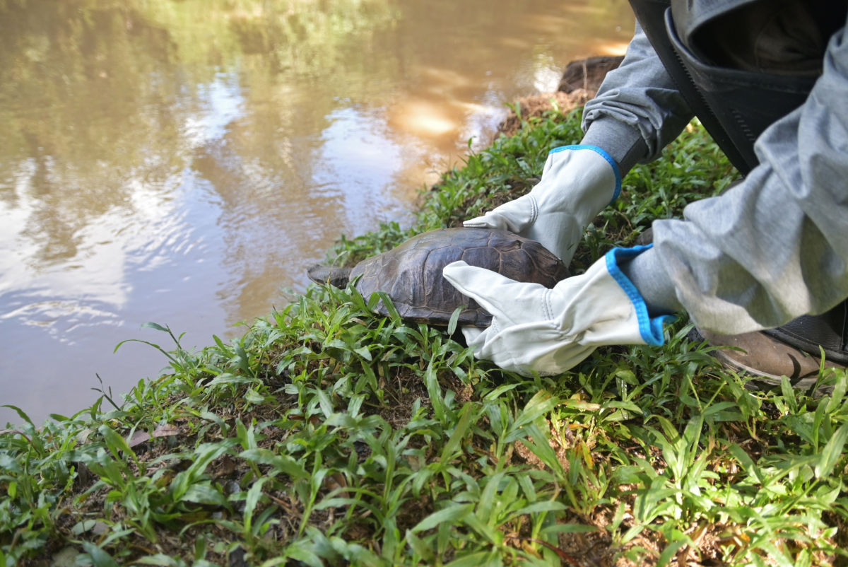 Realizamos o resgate e o remanejamento de animais terrestres e aquáticos para áreas seguras de preservação, garantindo a proteção das espécies locais antes da formação do lago