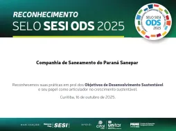 SELO DE EXCELÊNCIA - A Sanepar foi escolhida Empresa Destaque na Categoria de companhias com receita líquida de R$ 5 bilhões a R$ 20 bilhões, em que foi uma das vencedoras pela 12ª vez – sendo oito delas, consecutivas – ao lado de Cogna, Eneva, Engie, Fleury, Guararapes, Klabin, Lojas Renner, M. Dias Branco e Randoncorp. O resultado das vencedoras em uma das três categorias havia sido divulgado pela Anefac em agosto.